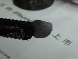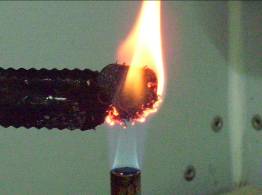 試燒的結果如照片所示:1、圖一為燃燒前的試片;2、圖二是燃燒中的試片;3、圖三是燃燒後的試片。從圖二可以發現燃燒時活性炭阻燃劑會像蠕蟲一樣,一條一條向外膨脹,達到阻燃的效果。